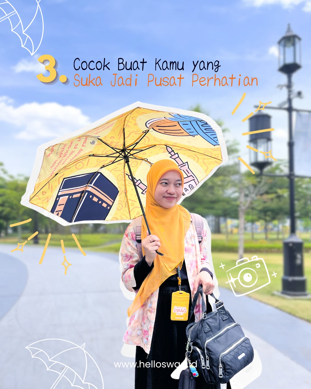Desainnya standout, warnanya nyentrik, dan vibe-nya bold banget! Jalan bawapayung fullprint? Siap-siap dilirik orang. 🤩👀